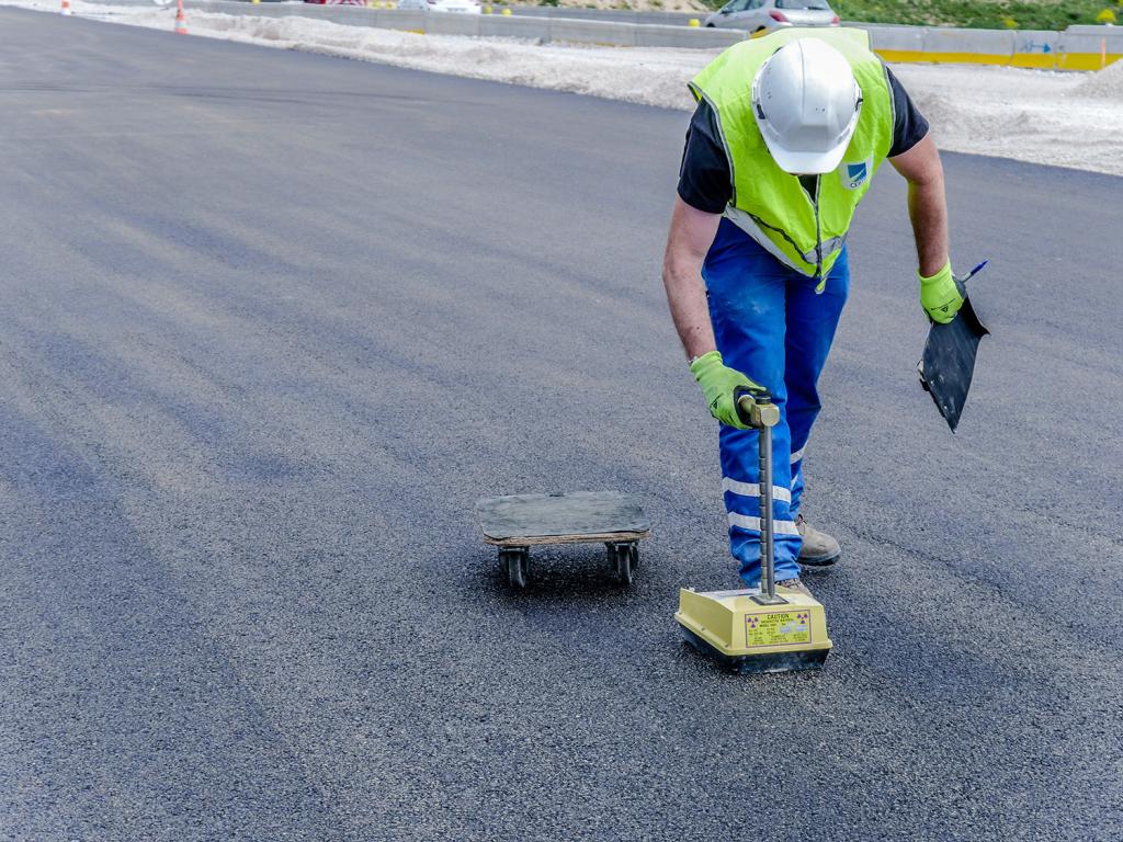- Contrôle de mise en œuvre (compactage, aspect de surface, épaisseur, drainabilité, collage, adhérence) de manière à garantir l’obtention des performances mécaniques des matériaux, leurs propriétés d’usage, et de la conformité/durabilité des structures mises en œuvre.