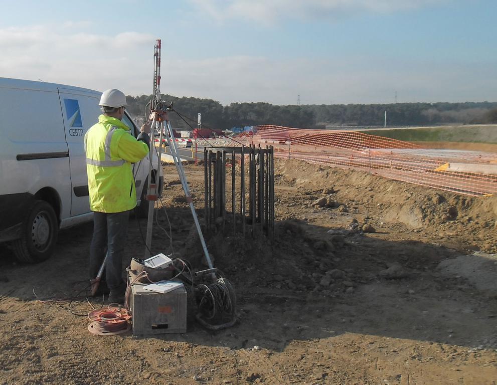 Le but de l’auscultation par sismique parallèle est de déterminer la longueur de l’élément de fondation et la vitesse sismique dans le matériau constitutif.